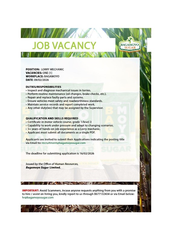 Bagamoyo Sugar LTD Vacancies 2026 present valuable employment opportunities for individuals seeking long-term careers in agriculture and manufacturing. Qualified candidates are encouraged to apply for suitable positions as vacancies become available.